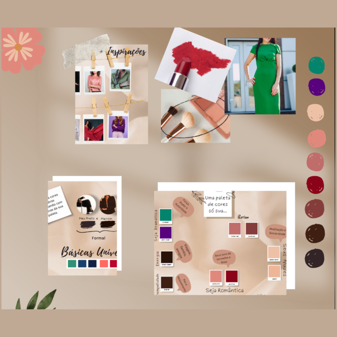 Ebook completo com exemplos visuais, explicações claras e instruções práticas para você usar suas cores ideais no dia a dia. São páginas ricamente ilustradas!